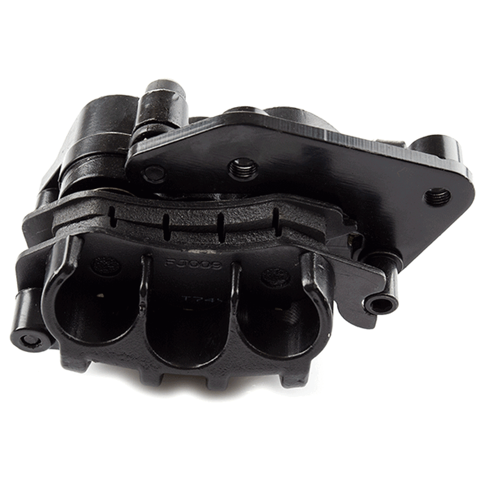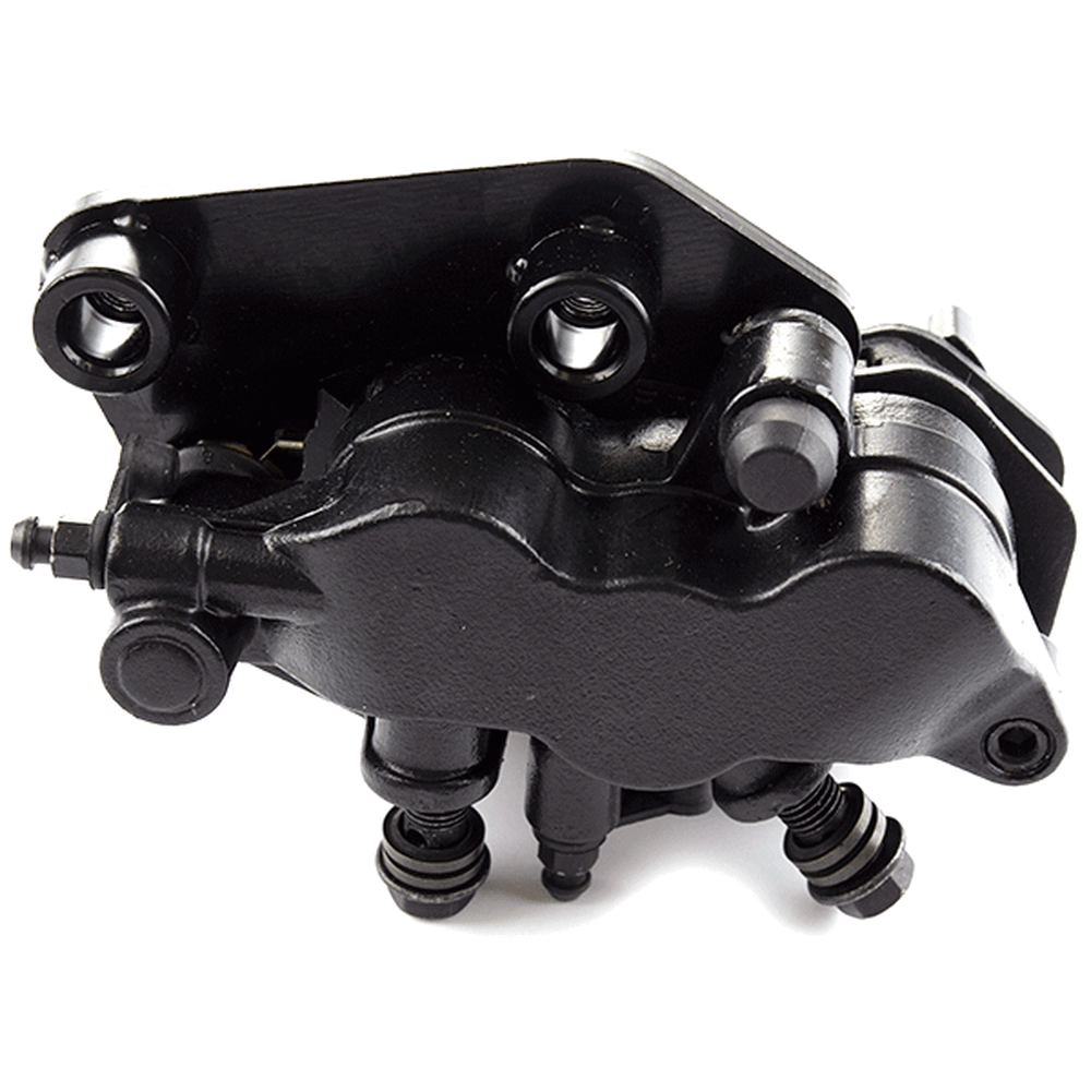 Squeezing the brake lever pushes a hydraulic piston, which sends fluid down the brake lines and into the caliper.