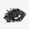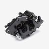 Squeezing the brake lever pushes a hydraulic piston, which sends fluid down the brake lines and into the caliper.