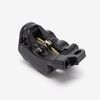 Squeezing the brake lever pushes a hydraulic piston, which sends fluid down the brake lines and into the caliper.