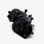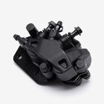 Squeezing the brake lever pushes a hydraulic piston, which sends fluid down the brake lines and into the caliper.