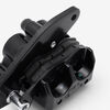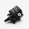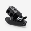 Squeezing the brake lever pushes a hydraulic piston, which sends fluid down the brake lines and into the caliper.