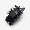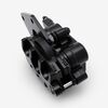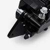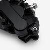 Squeezing the brake lever pushes a hydraulic piston, which sends fluid down the brake lines and into the caliper.