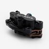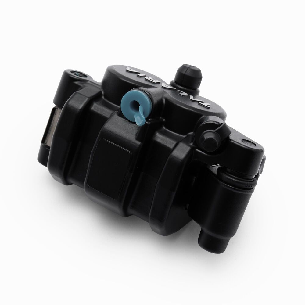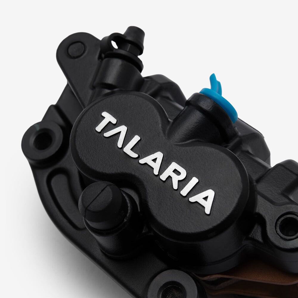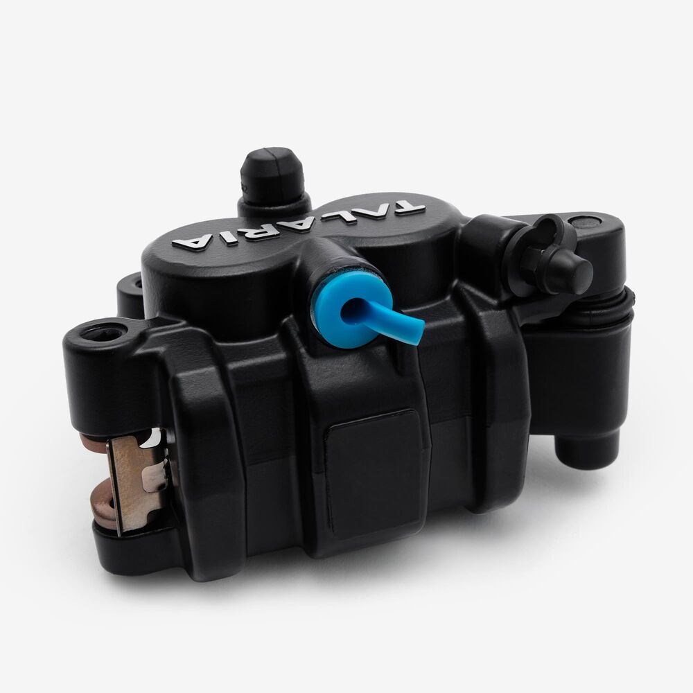 Squeezing the brake lever pushes a hydraulic piston, which sends fluid down the brake lines and into the caliper.