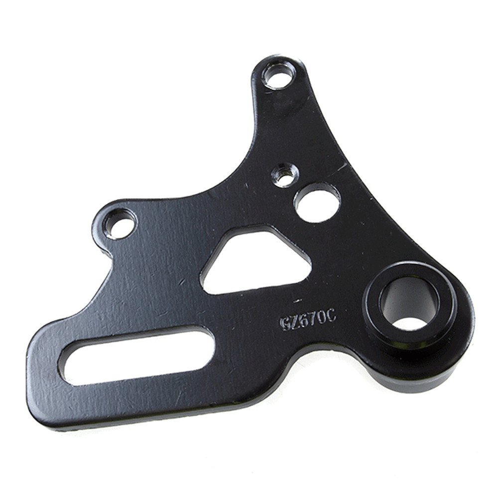 A bracket in a motorcycle is a supportive component used to mount or secure various parts and accessories. It provides a stable connection point for components such as the exhaust system, mirrors, or electrical fittings, ensuring they remain firmly in place and properly aligned during operation.