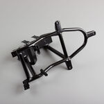 A bracket in a motorcycle is a supportive component used to mount or secure various parts and accessories. It provides a stable connection point for components such as the exhaust system, mirrors, or electrical fittings, ensuring they remain firmly in place and properly aligned during operation.