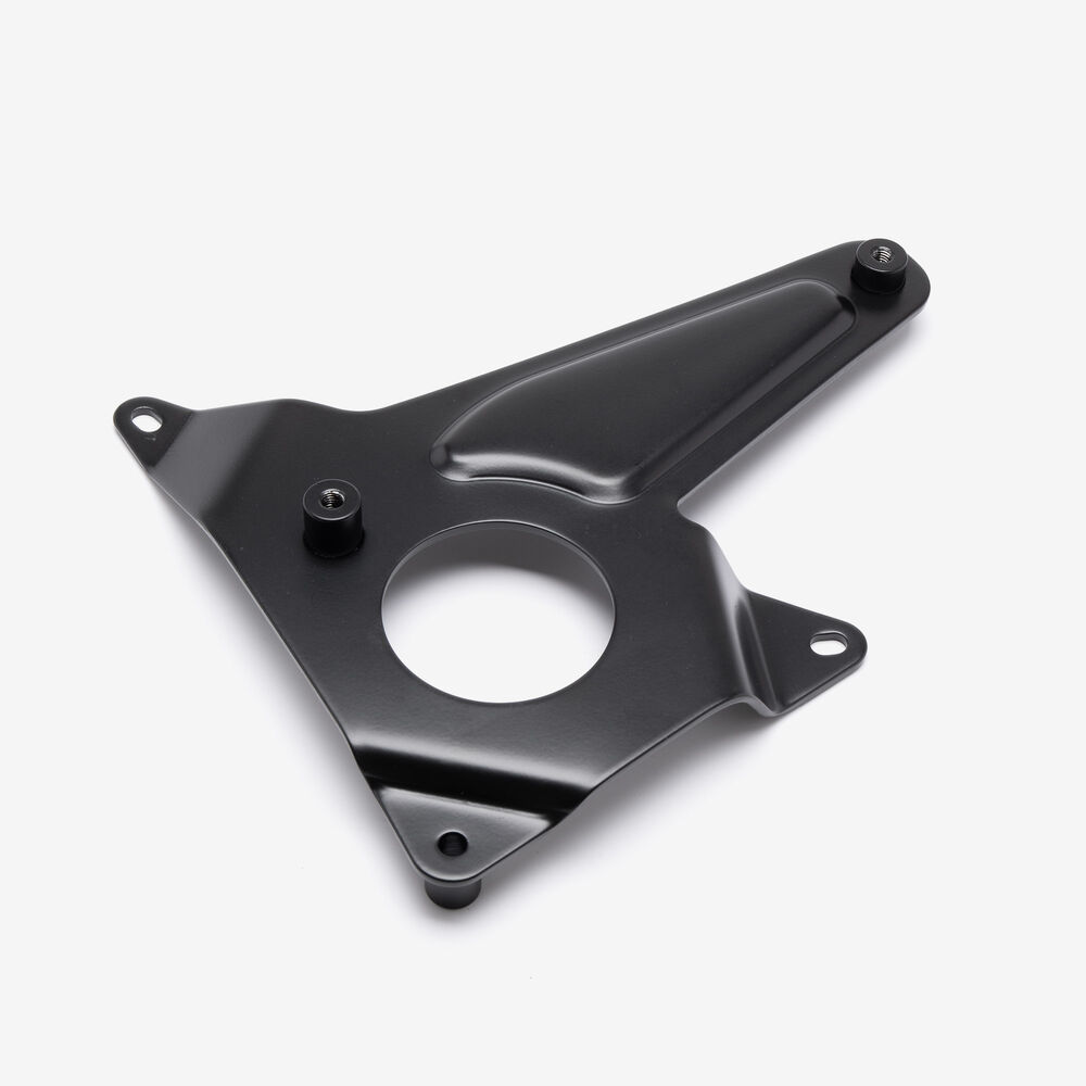 A bracket in a motorcycle is a supportive component used to mount or secure various parts and accessories. It provides a stable connection point for components such as the exhaust system, mirrors, or electrical fittings, ensuring they remain firmly in place and properly aligned during operation.