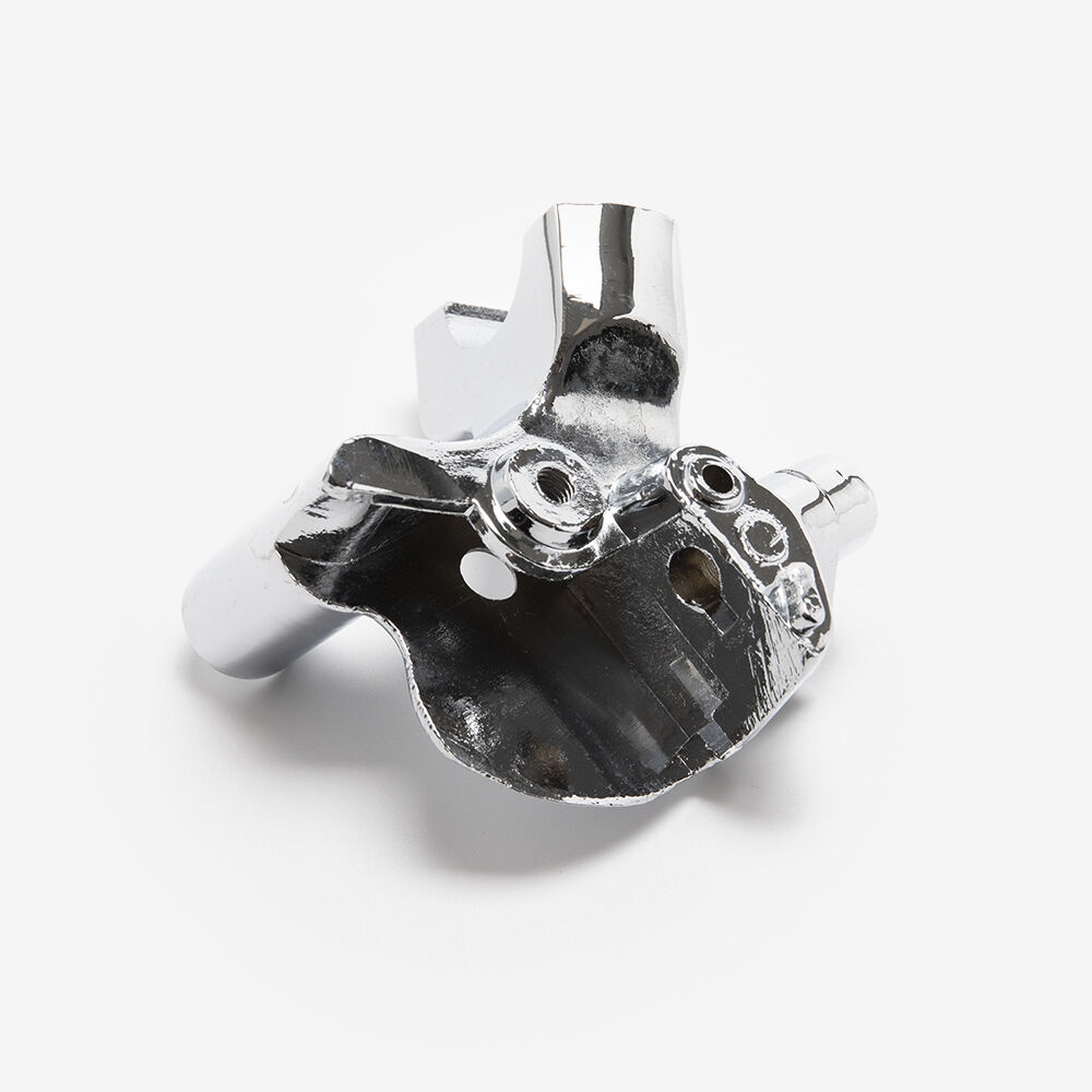 A bracket in a motorcycle is a supportive component used to mount or secure various parts and accessories. It provides a stable connection point for components such as the exhaust system, mirrors, or electrical fittings, ensuring they remain firmly in place and properly aligned during operation.