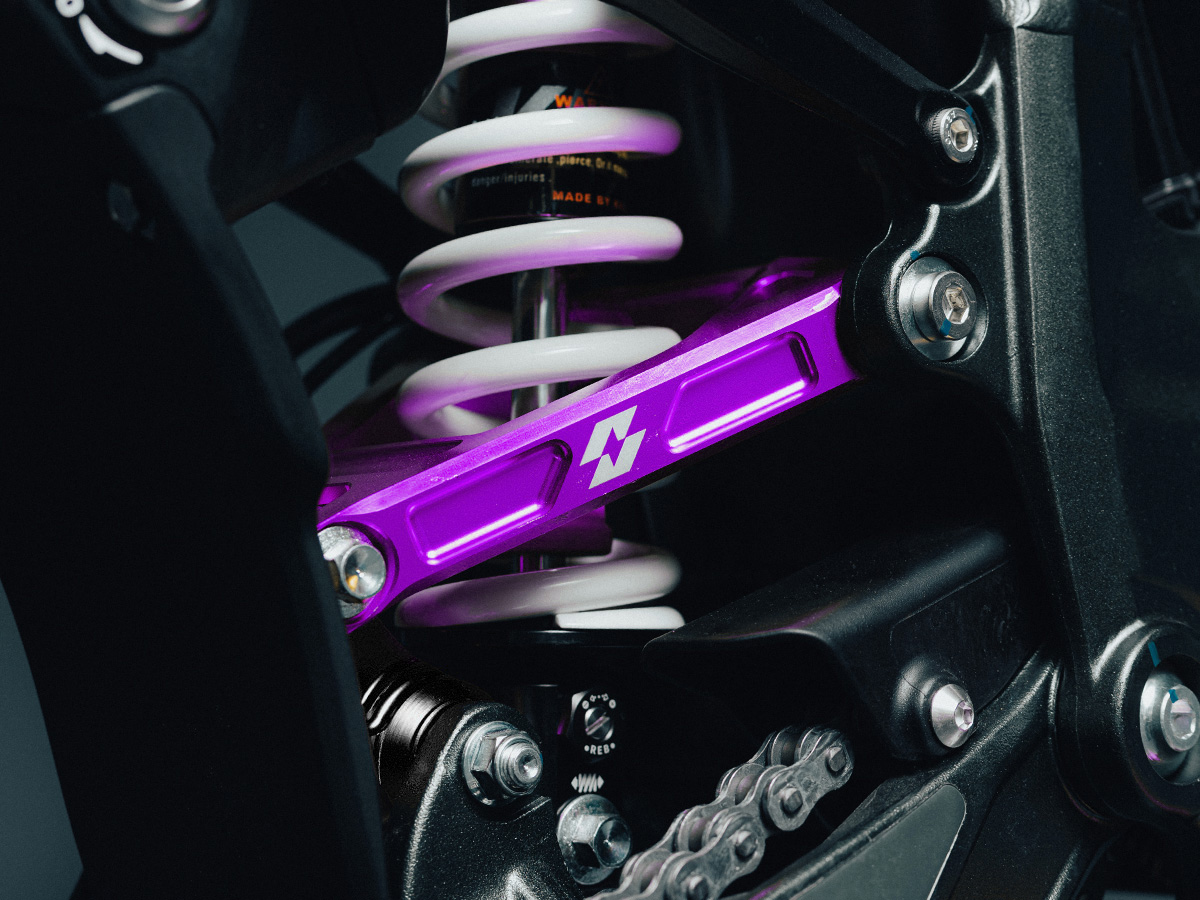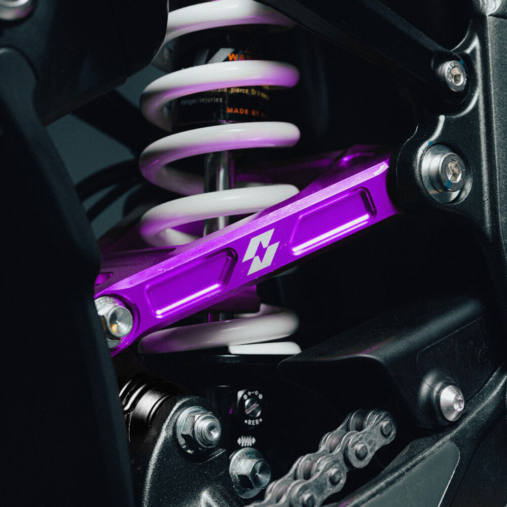 With this upgrade, you can push your bike to the limit on bigger jumps and wheelies due to the lightweight and added reinforcement compared to a stock triangle and best of all your suspension will be unaffected.