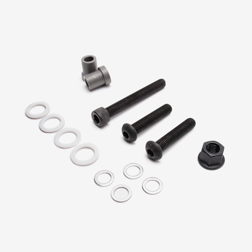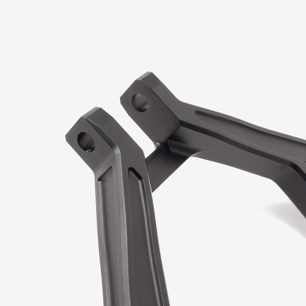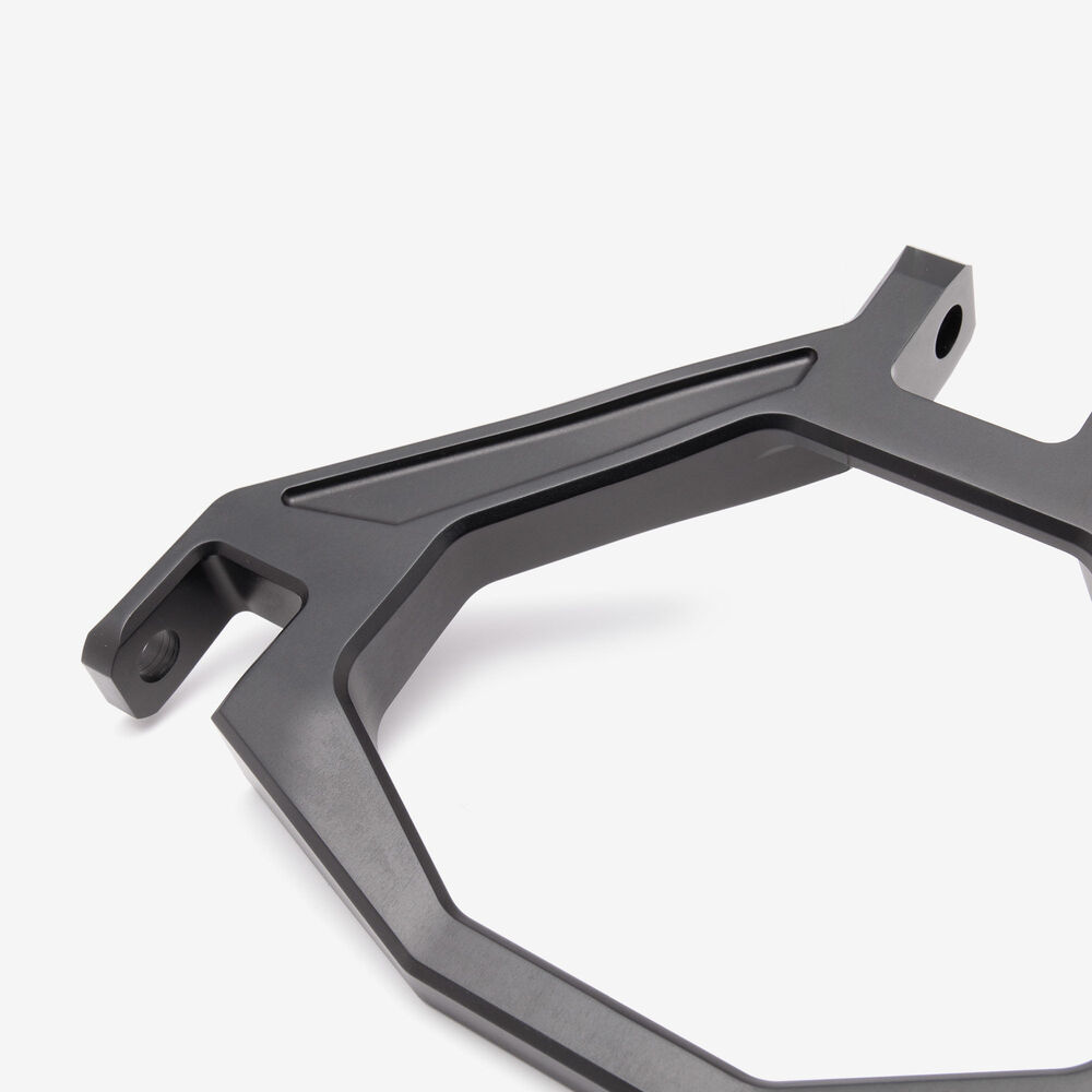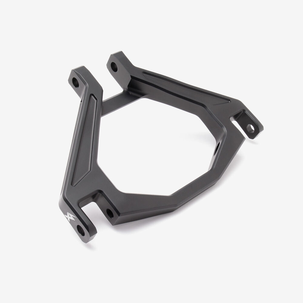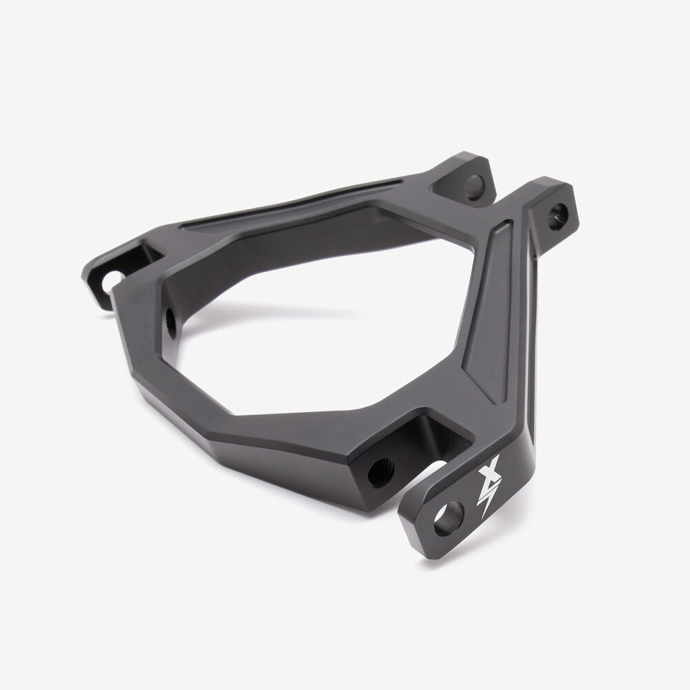 A bracket in a motorcycle is a supportive component used to mount or secure various parts and accessories. It provides a stable connection point for components such as the exhaust system, mirrors, or electrical fittings, ensuring they remain firmly in place and properly aligned during operation.