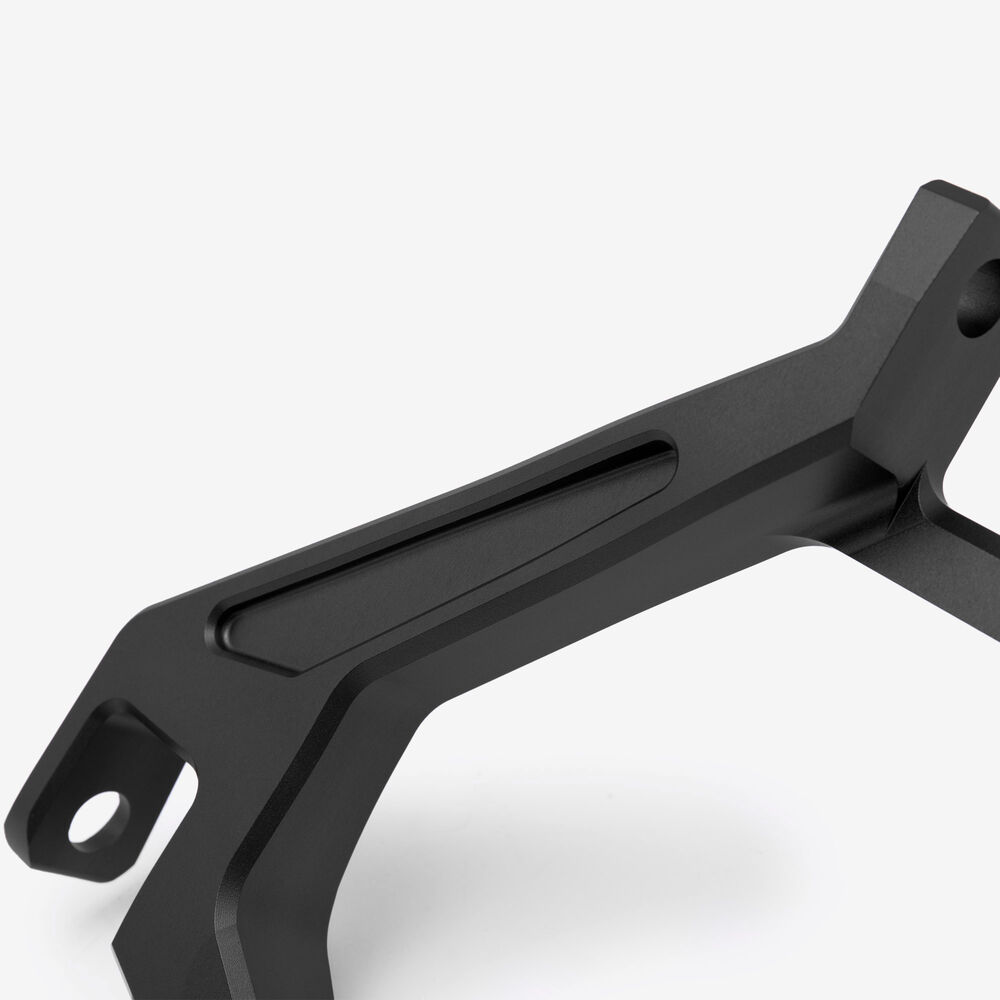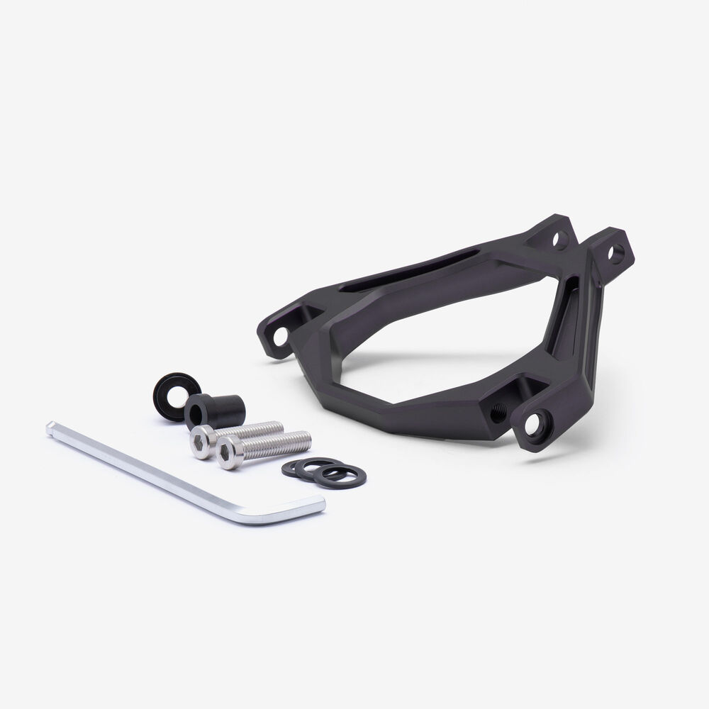 A bracket in a motorcycle is a supportive component used to mount or secure various parts and accessories. It provides a stable connection point for components such as the exhaust system, mirrors, or electrical fittings, ensuring they remain firmly in place and properly aligned during operation.