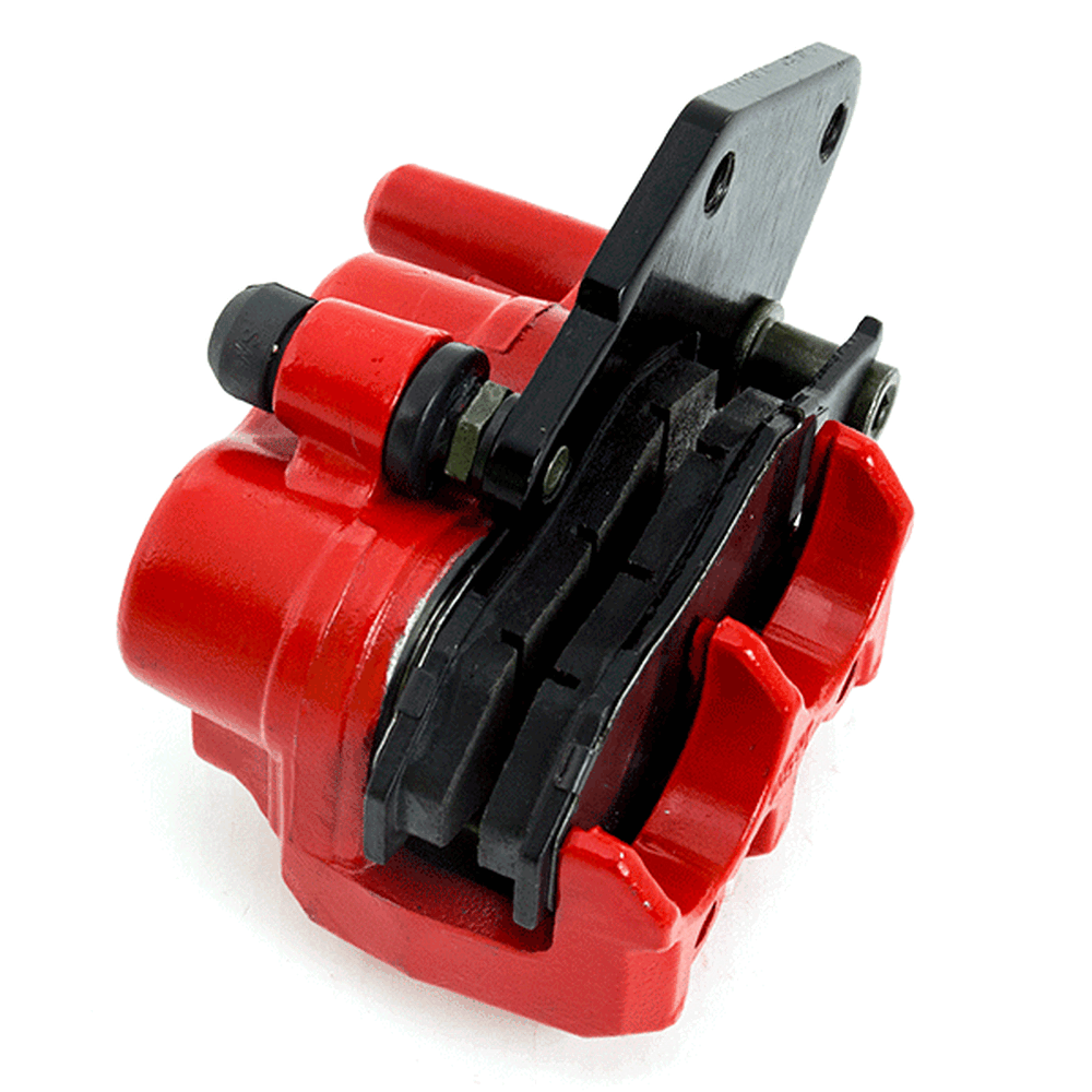 Squeezing the brake lever pushes a hydraulic piston, which sends fluid down the brake lines and into the caliper.