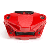 Squeezing the brake lever pushes a hydraulic piston, which sends fluid down the brake lines and into the caliper.