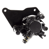 Squeezing the brake lever pushes a hydraulic piston, which sends fluid down the brake lines and into the caliper.