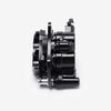 Squeezing the brake lever pushes a hydraulic piston, which sends fluid down the brake lines and into the caliper.