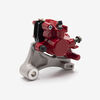 Squeezing the brake lever pushes a hydraulic piston, which sends fluid down the brake lines and into the caliper.