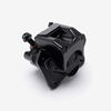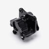 Squeezing the brake lever pushes a hydraulic piston, which sends fluid down the brake lines and into the caliper.