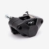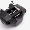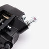 Squeezing the brake lever pushes a hydraulic piston, which sends fluid down the brake lines and into the caliper.