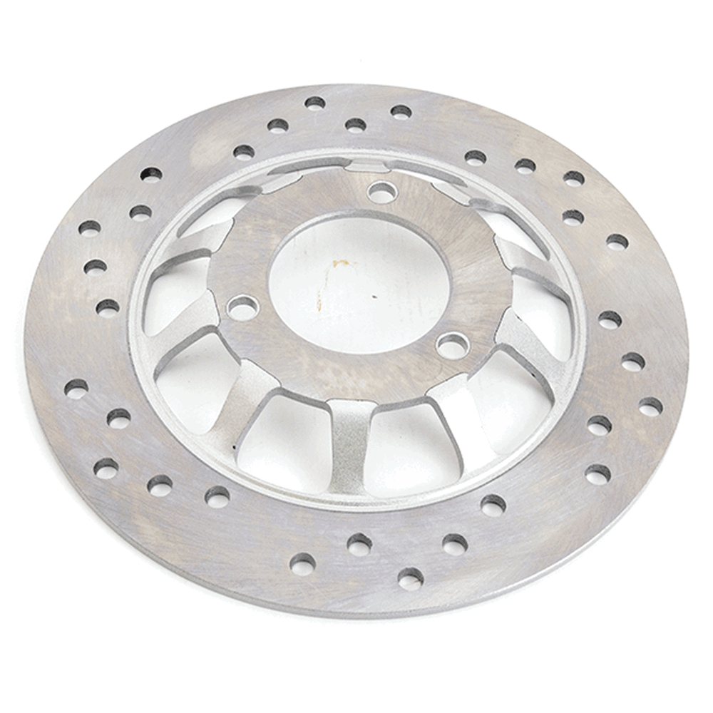 The brake rotor (disc) which rotates with the wheel, is clamped by brake pads (friction material) fitted to the caliper from both sides with pressure from the piston(s) (pressure mechanism) and decelerates the disc rotation, thereby slowing down and stopping the vehicle.