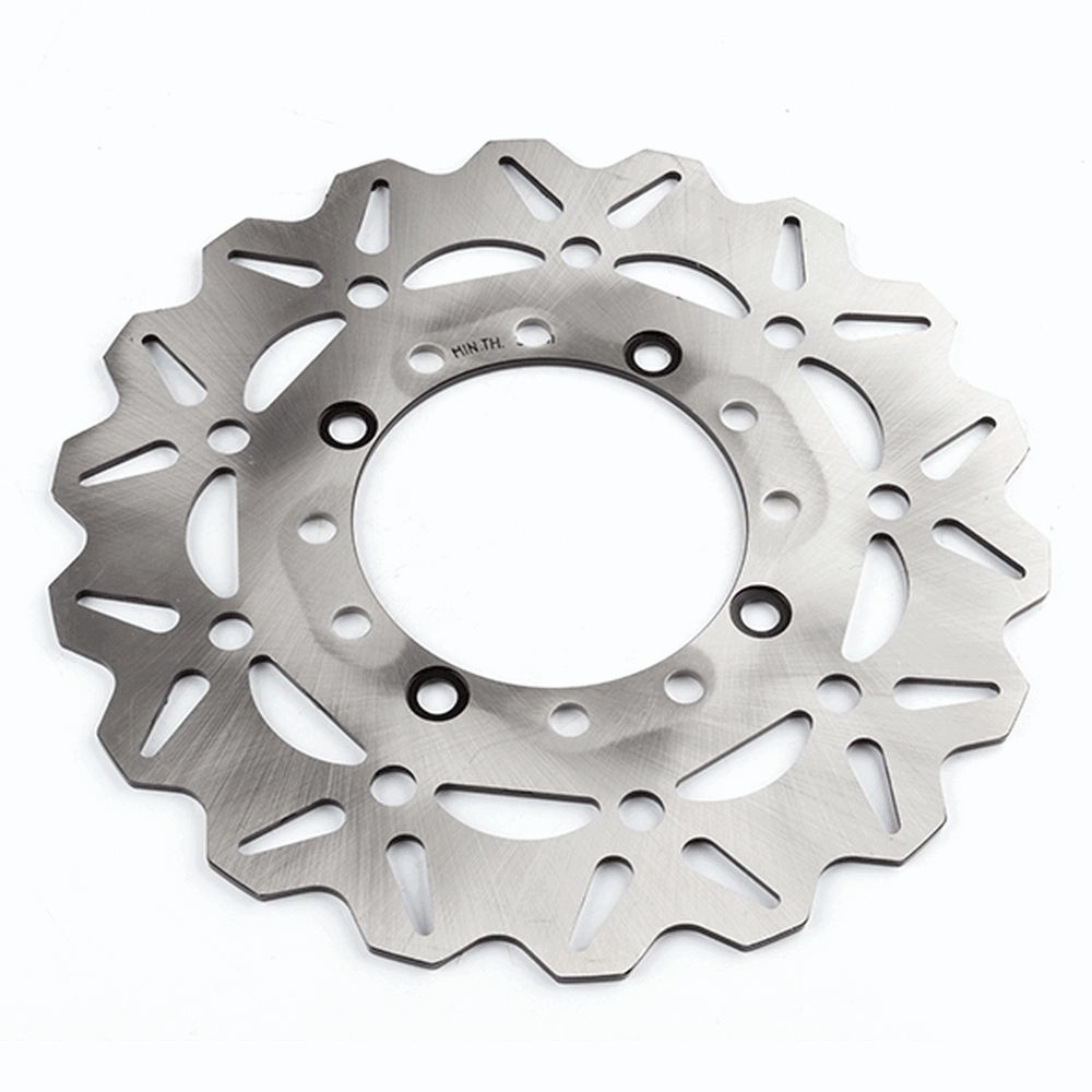 The brake rotor (disc) which rotates with the wheel, is clamped by brake pads (friction material) fitted to the caliper from both sides with pressure from the piston(s) (pressure mechanism) and decelerates the disc rotation, thereby slowing down and stopping the vehicle.