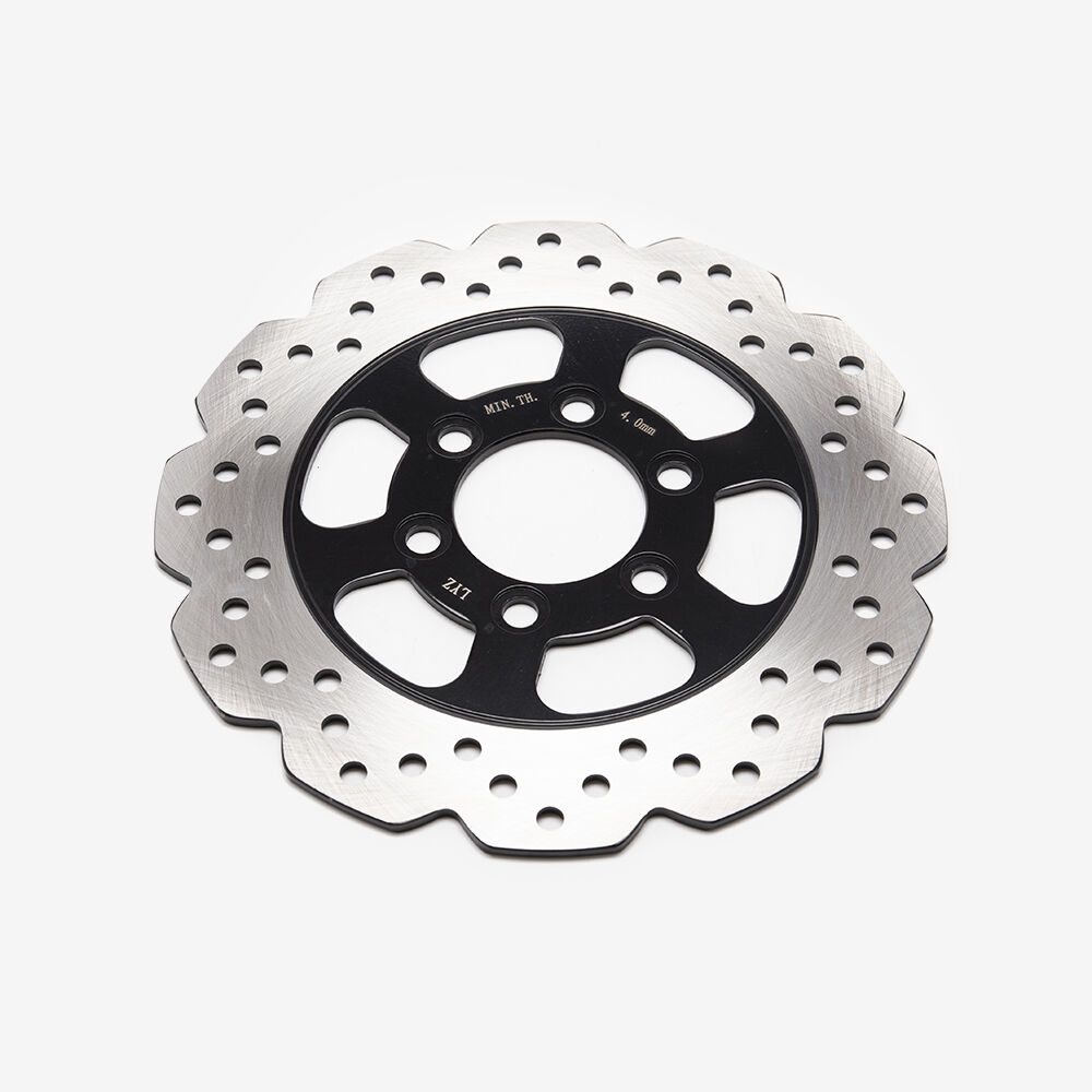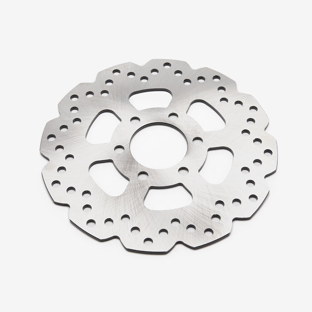 The brake rotor (disc) which rotates with the wheel, is clamped by brake pads (friction material) fitted to the caliper from both sides with pressure from the piston(s) (pressure mechanism) and decelerates the disc rotation, thereby slowing down and stopping the vehicle.