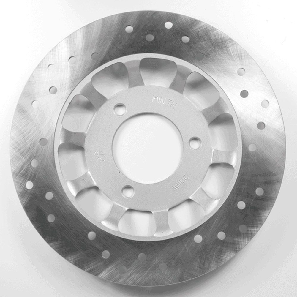 The brake rotor (disc) which rotates with the wheel, is clamped by brake pads (friction material) fitted to the caliper from both sides with pressure from the piston(s) (pressure mechanism) and decelerates the disc rotation, thereby slowing down and stopping the vehicle.