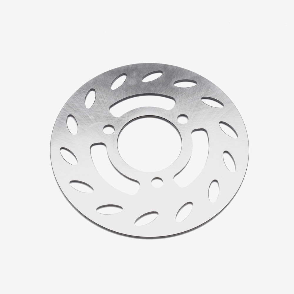 The brake rotor (disc) which rotates with the wheel, is clamped by brake pads (friction material) fitted to the caliper from both sides with pressure from the piston(s) (pressure mechanism) and decelerates the disc rotation, thereby slowing down and stopping the vehicle.