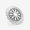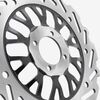 The brake rotor (disc) which rotates with the wheel, is clamped by brake pads (friction material) fitted to the caliper from both sides with pressure from the piston(s) (pressure mechanism) and decelerates the disc rotation, thereby slowing down and stopping the vehicle.