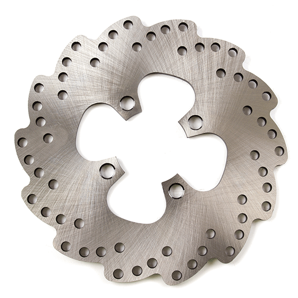 The brake rotor (disc) which rotates with the wheel, is clamped by brake pads (friction material) fitted to the caliper from both sides with pressure from the piston(s) (pressure mechanism) and decelerates the disc rotation, thereby slowing down and stopping the vehicle.