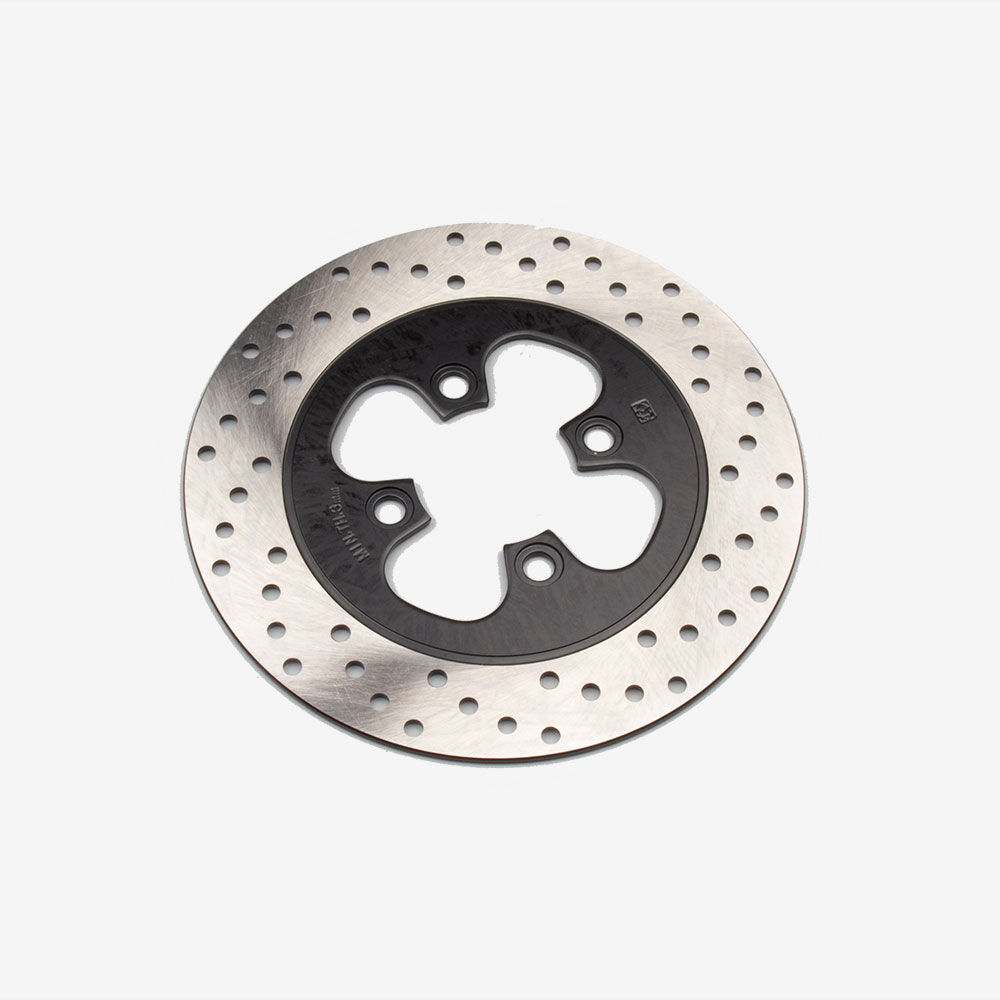 The brake rotor (disc) which rotates with the wheel, is clamped by brake pads (friction material) fitted to the caliper from both sides with pressure from the piston(s) (pressure mechanism) and decelerates the disc rotation, thereby slowing down and stopping the vehicle.