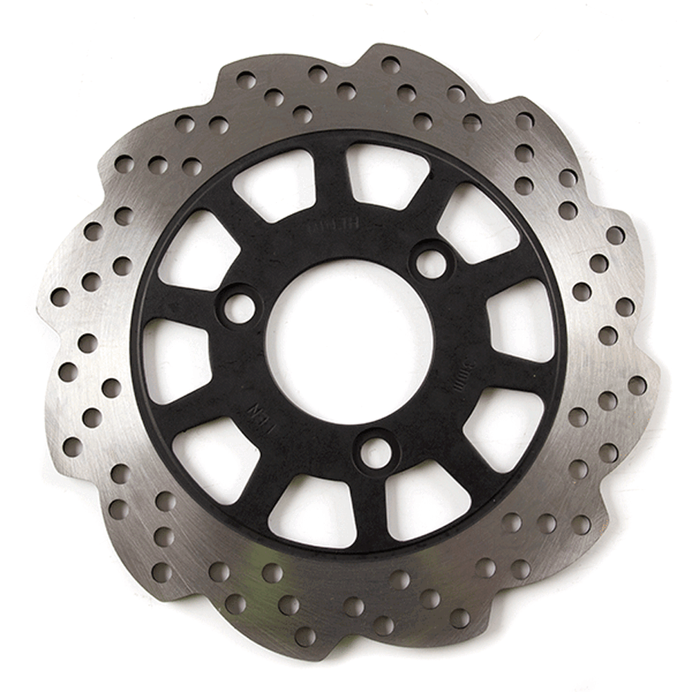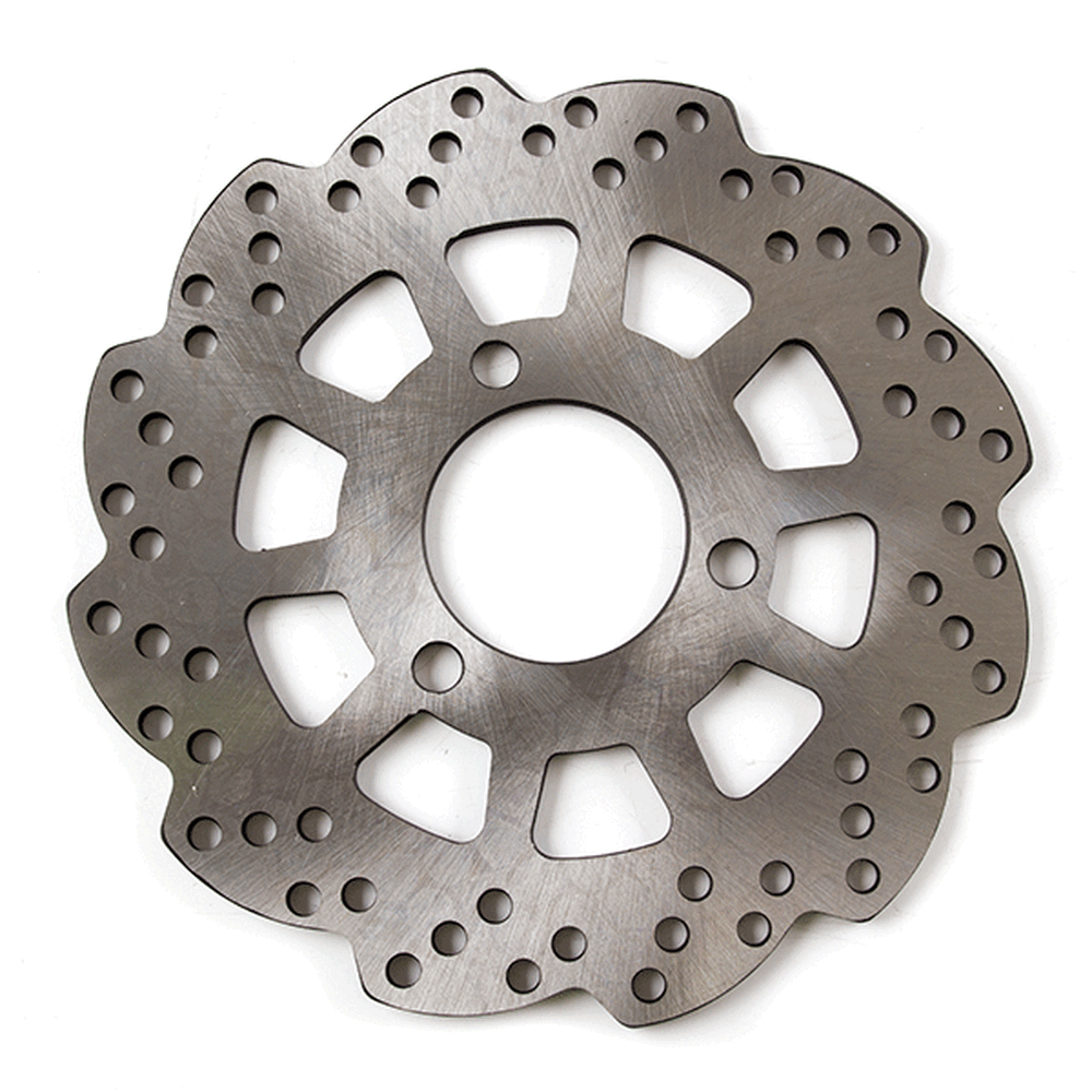 The brake rotor (disc) which rotates with the wheel, is clamped by brake pads (friction material) fitted to the caliper from both sides with pressure from the piston(s) (pressure mechanism) and decelerates the disc rotation, thereby slowing down and stopping the vehicle.