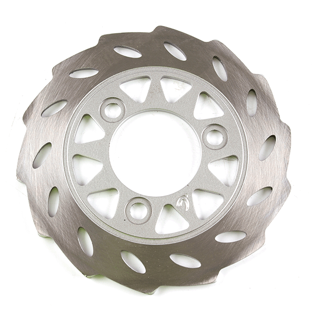 The brake rotor (disc) which rotates with the wheel, is clamped by brake pads (friction material) fitted to the caliper from both sides with pressure from the piston(s) (pressure mechanism) and decelerates the disc rotation, thereby slowing down and stopping the vehicle.