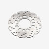 The brake rotor (disc) which rotates with the wheel, is clamped by brake pads (friction material) fitted to the caliper from both sides with pressure from the piston(s) (pressure mechanism) and decelerates the disc rotation, thereby slowing down and stopping the vehicle.