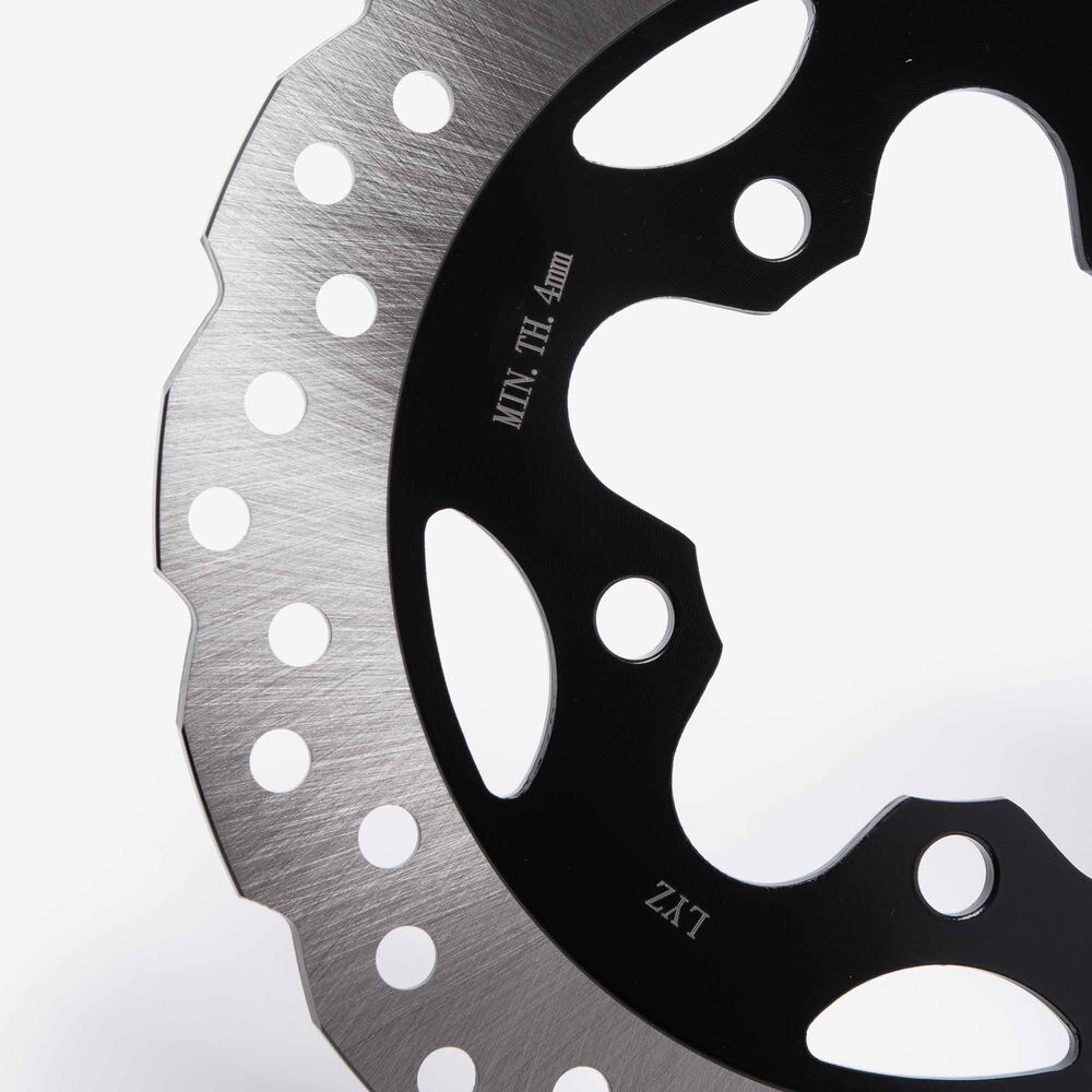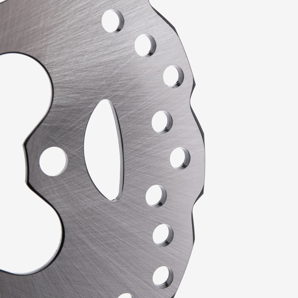 The brake rotor (disc) which rotates with the wheel, is clamped by brake pads (friction material) fitted to the caliper from both sides with pressure from the piston(s) (pressure mechanism) and decelerates the disc rotation, thereby slowing down and stopping the vehicle.