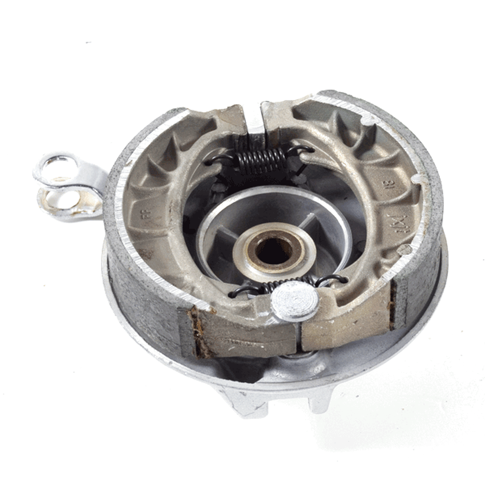 The rear brake hub in a motorcycle is a central component of the drum brake system, housing the brake shoes and providing the surface (brake drum) against which the shoes press to create friction. This friction slows down or stops the rear wheel when the brake is applied. The hub also serves as the mounting point for the rear wheel and helps ensure smooth rotation.