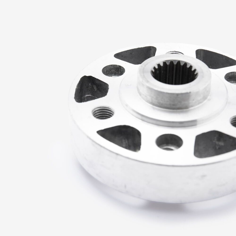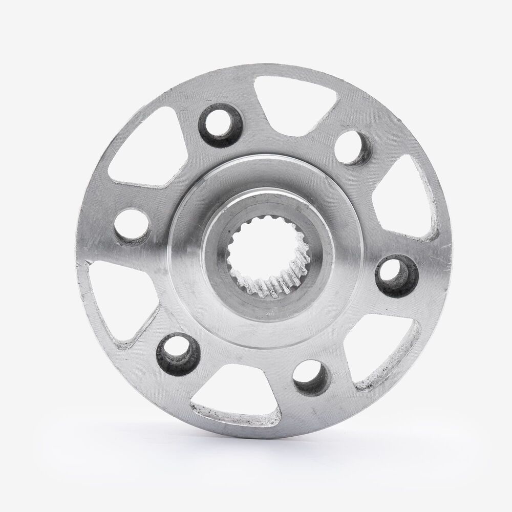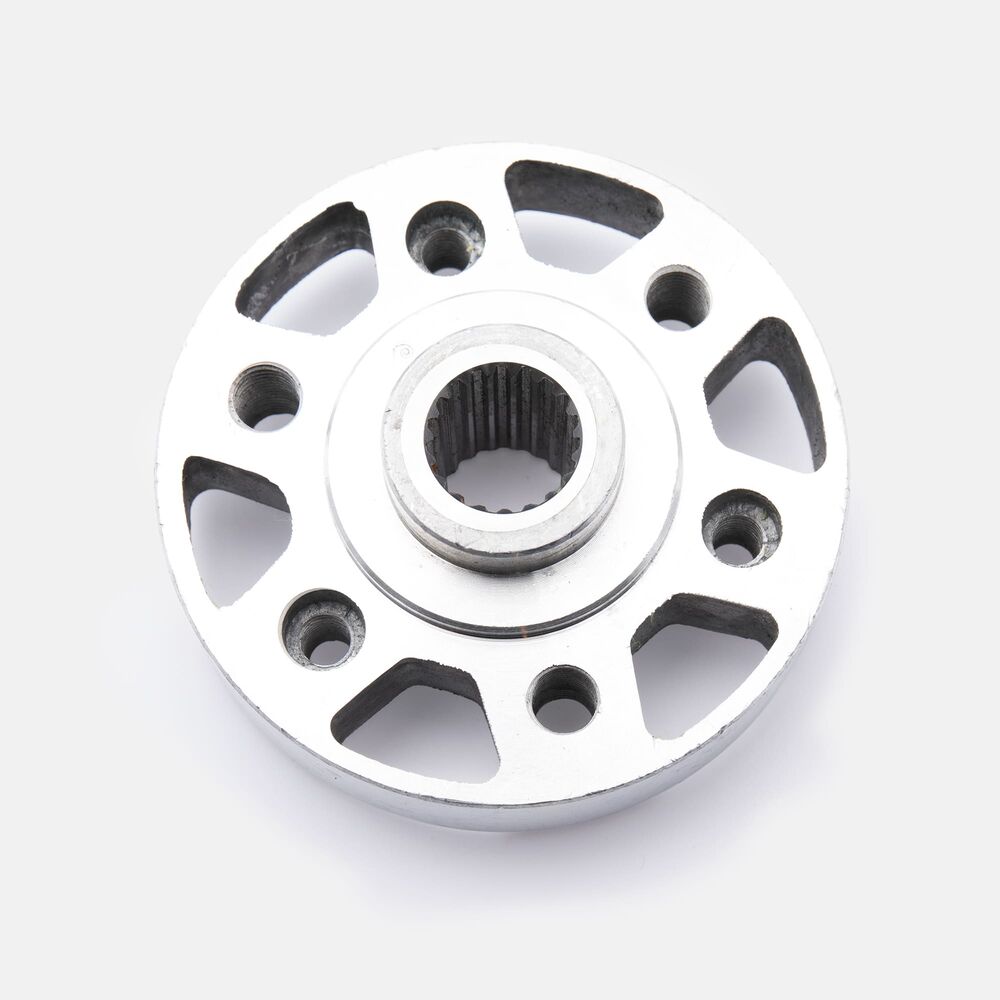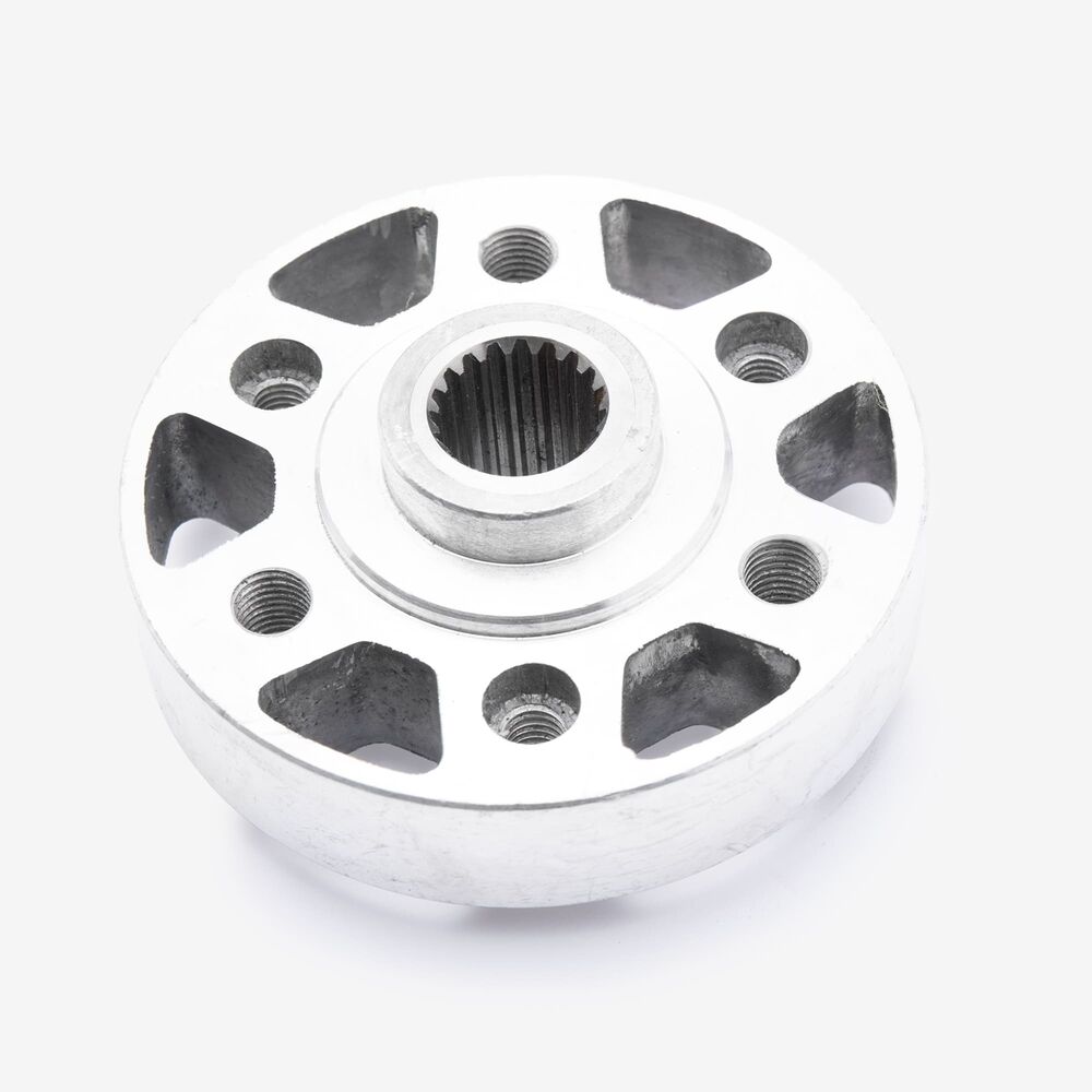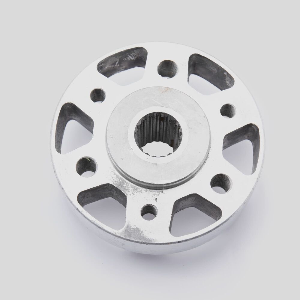 The rear brake hub in a motorcycle is a central component of the drum brake system, housing the brake shoes and providing the surface (brake drum) against which the shoes press to create friction. This friction slows down or stops the rear wheel when the brake is applied. The hub also serves as the mounting point for the rear wheel and helps ensure smooth rotation.