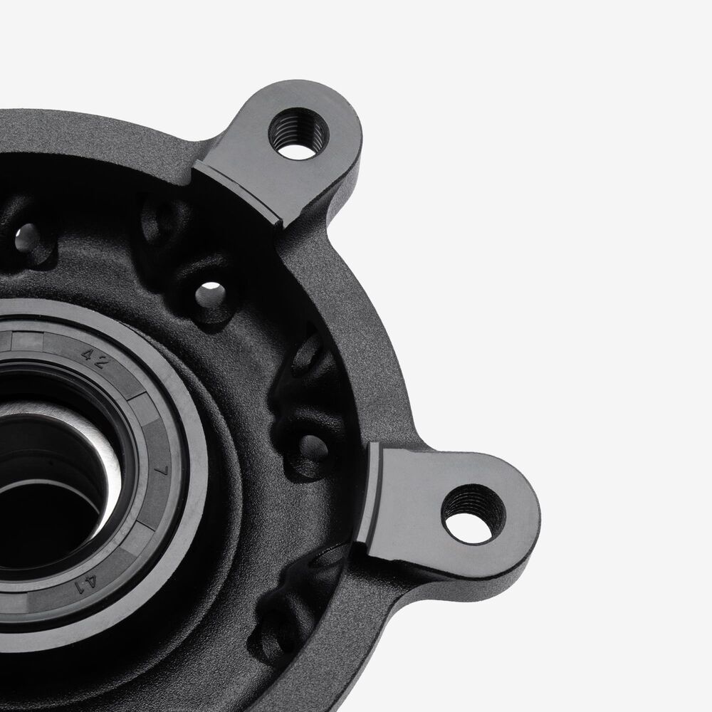 The rear brake hub in a motorcycle is a central component of the drum brake system, housing the brake shoes and providing the surface (brake drum) against which the shoes press to create friction. This friction slows down or stops the rear wheel when the brake is applied. The hub also serves as the mounting point for the rear wheel and helps ensure smooth rotation.
