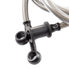 The combined braking brake hose in a motorcycle is a flexible tube that carries brake fluid between the master cylinder and the brake calipers or drums. In a combined braking system (CBS), it connects both the front and rear brakes, ensuring that applying the brake lever or pedal distributes braking force to both wheels for improved safety and stability.