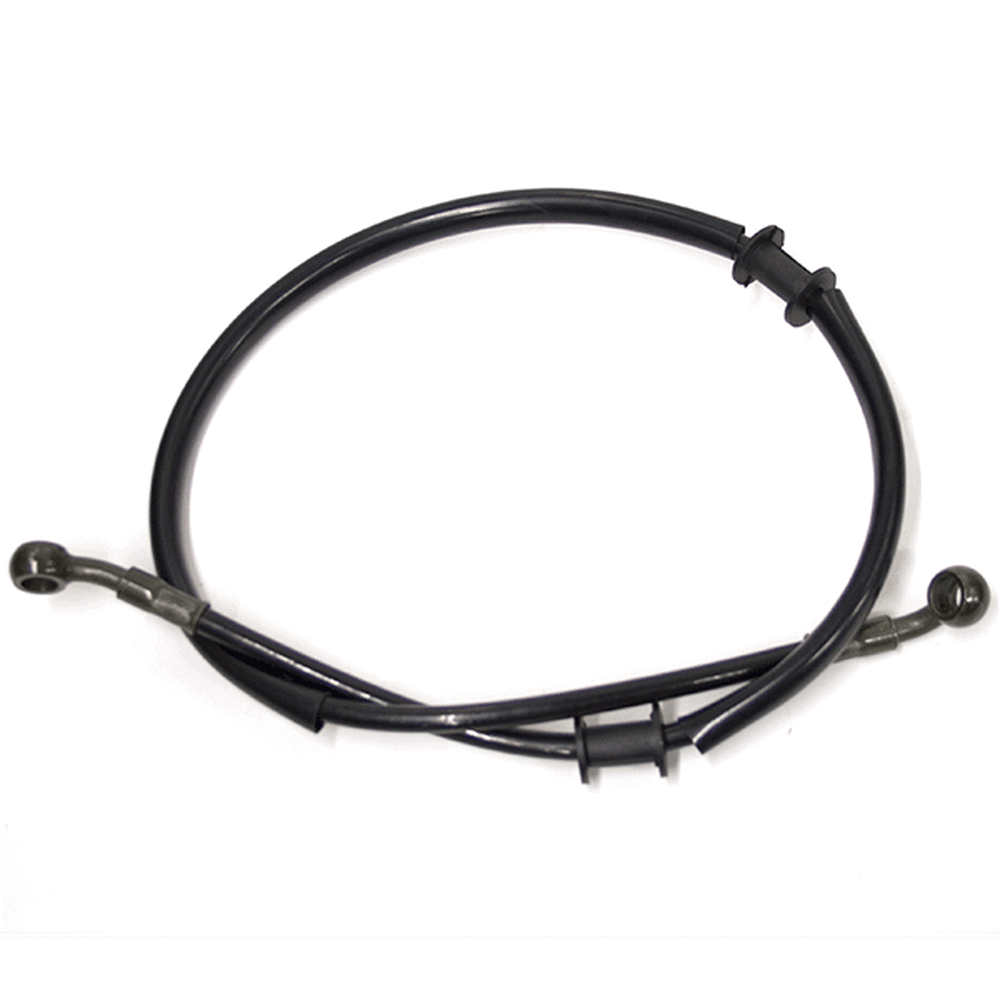 The hose's job is to carry brake fluid from the master cylinder to the caliper on the wheel.