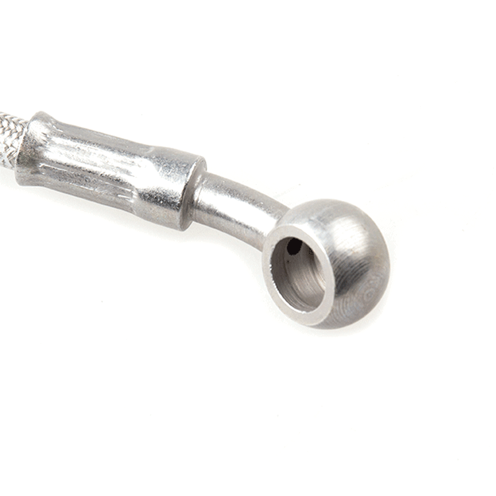 The hose's job is to carry brake fluid from the master cylinder to the caliper on the wheel.