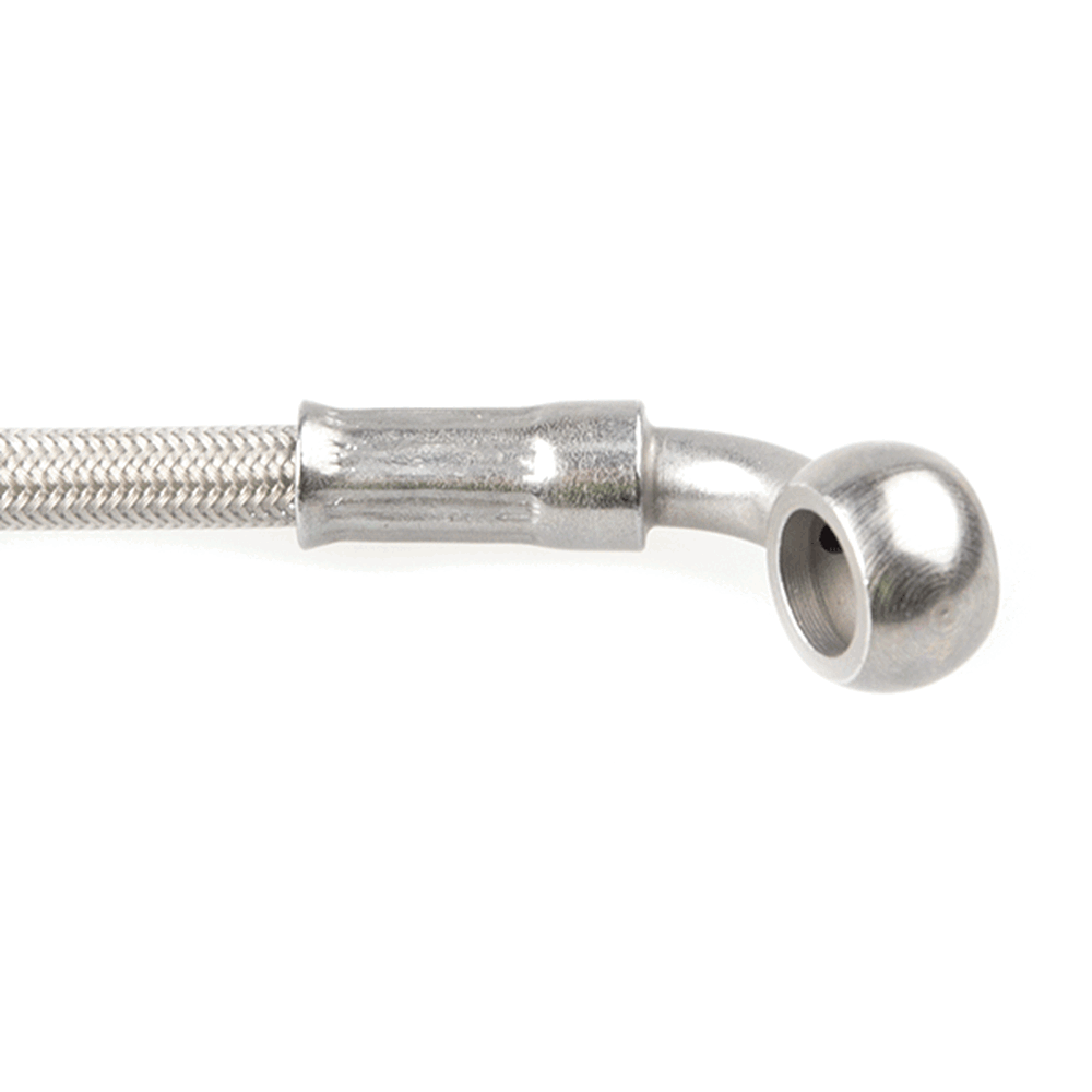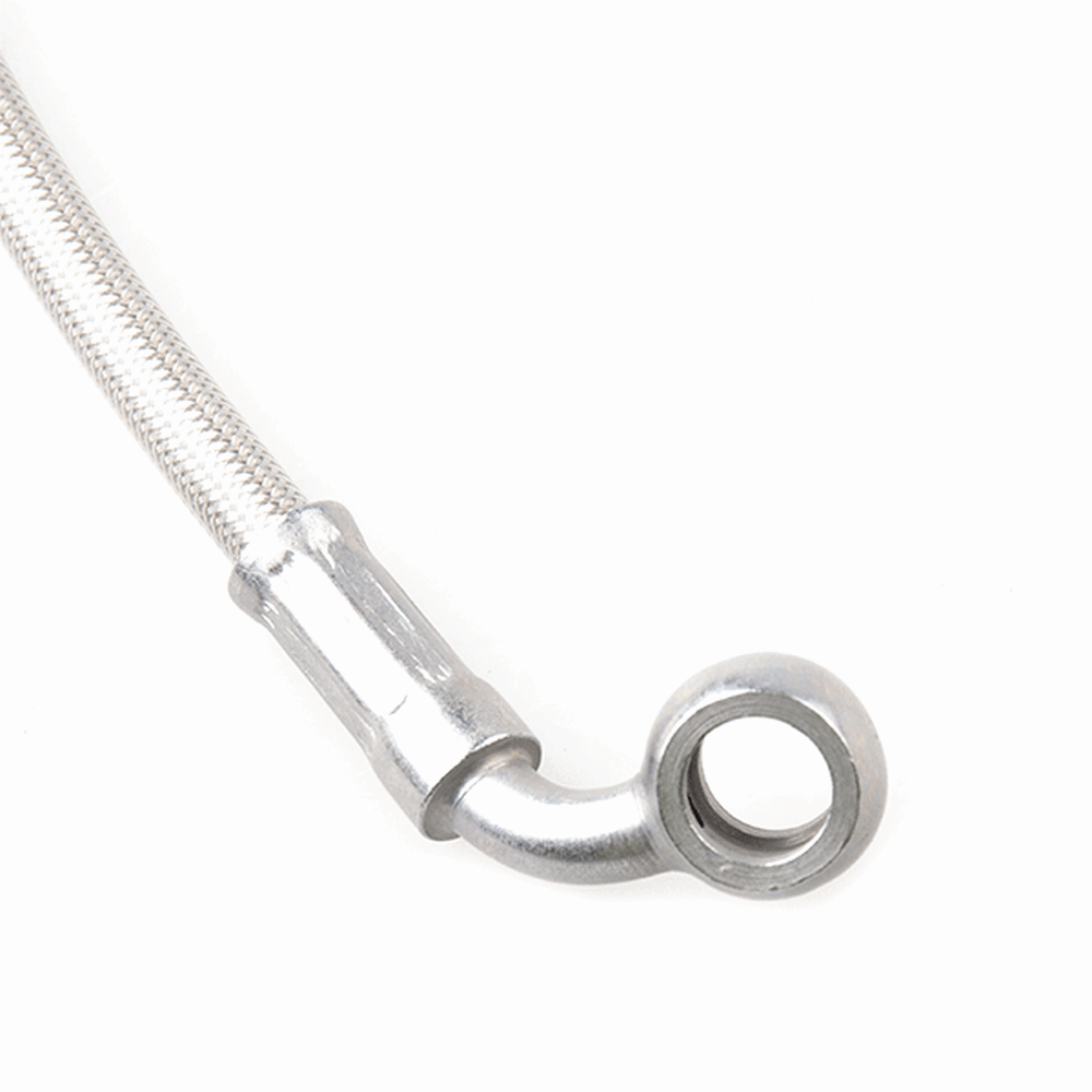 The hose's job is to carry brake fluid from the master cylinder to the caliper on the wheel.
