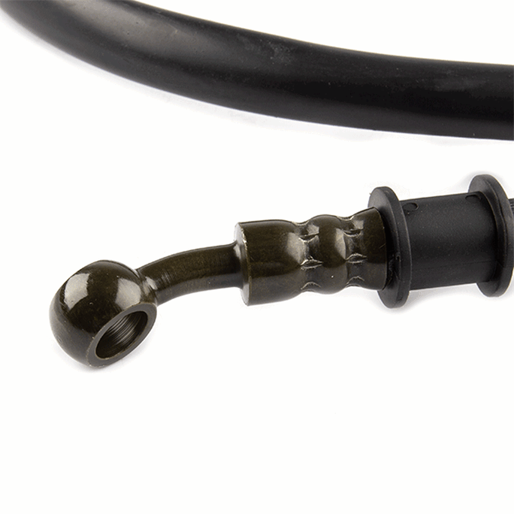The hose's job is to carry brake fluid from the master cylinder to the caliper on the wheel.