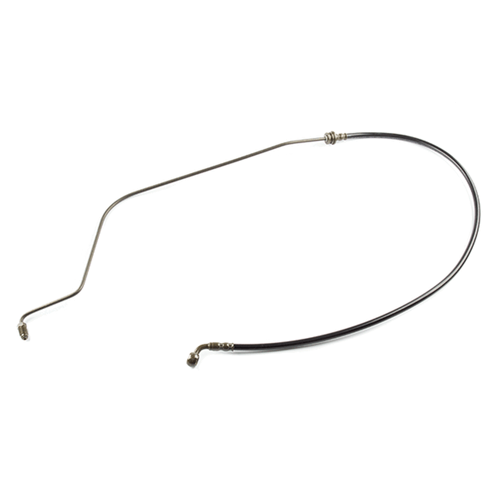 The hose's job is to carry brake fluid from the master cylinder to the caliper on the wheel.