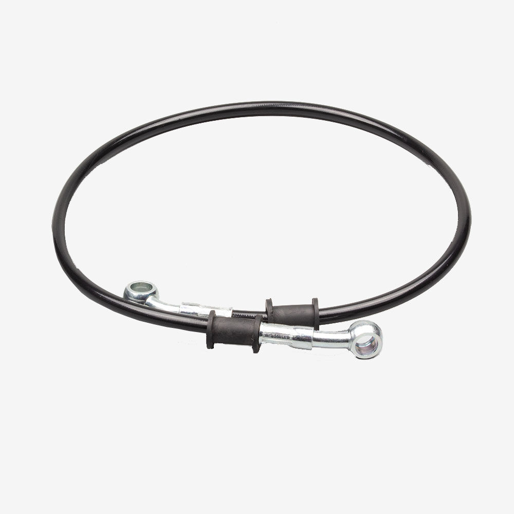The hose's job is to carry brake fluid from the master cylinder to the caliper on the wheel.