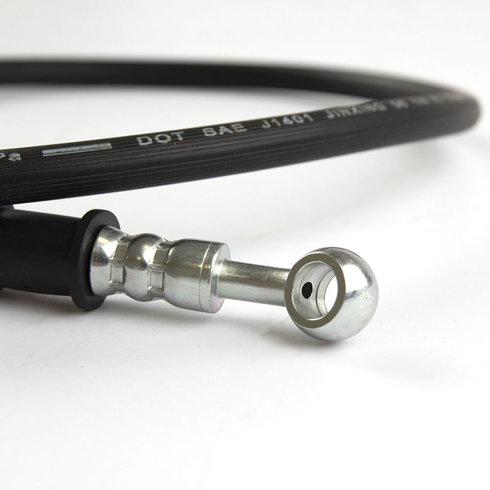 The hose's job is to carry brake fluid from the master cylinder to the caliper on the wheel.