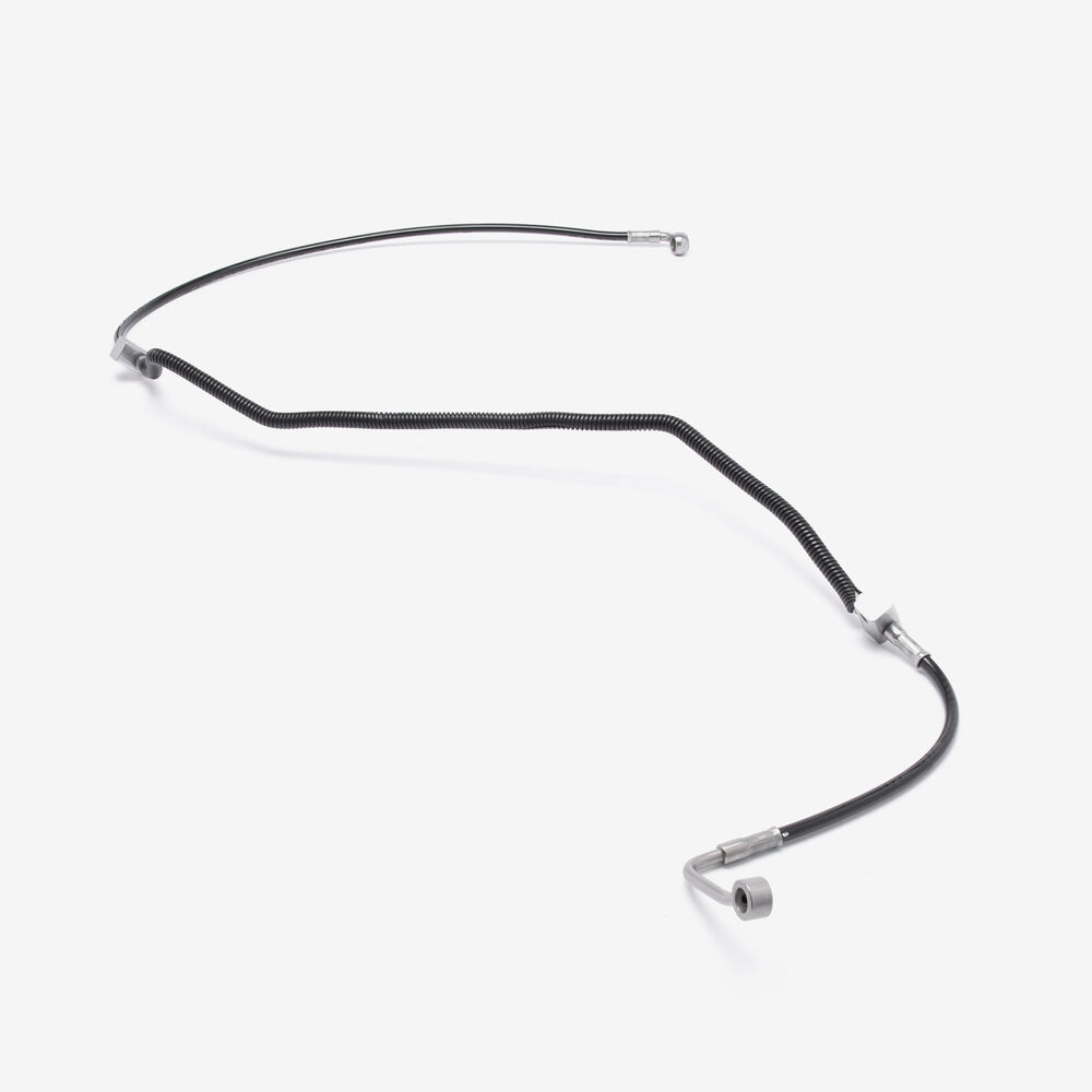 The hose's job is to carry brake fluid from the master cylinder to the caliper on the wheel.