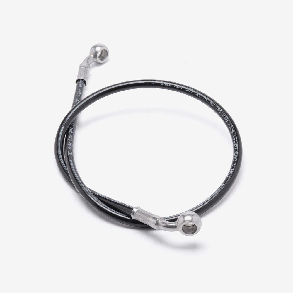 The hose's job is to carry brake fluid from the master cylinder to the caliper on the wheel.