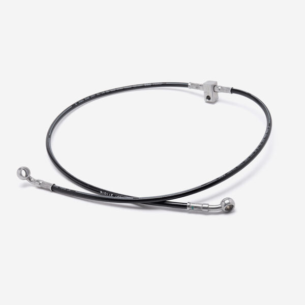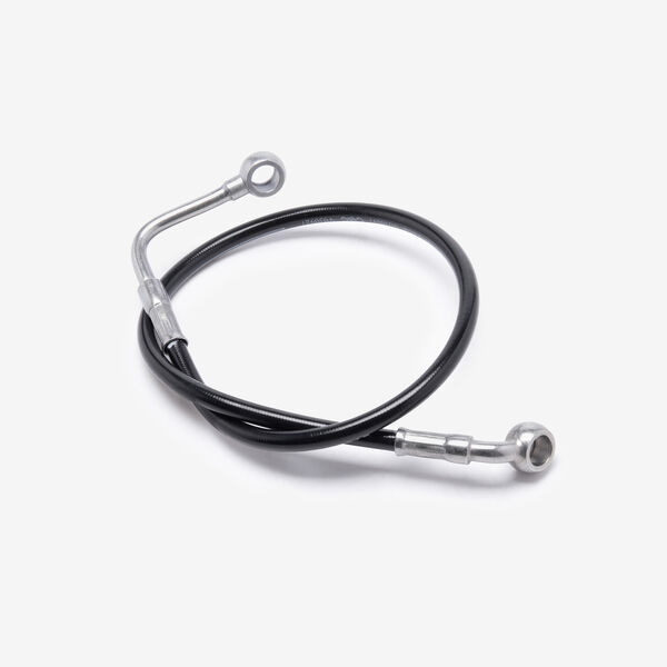 The hose's job is to carry brake fluid from the master cylinder to the caliper on the wheel.