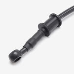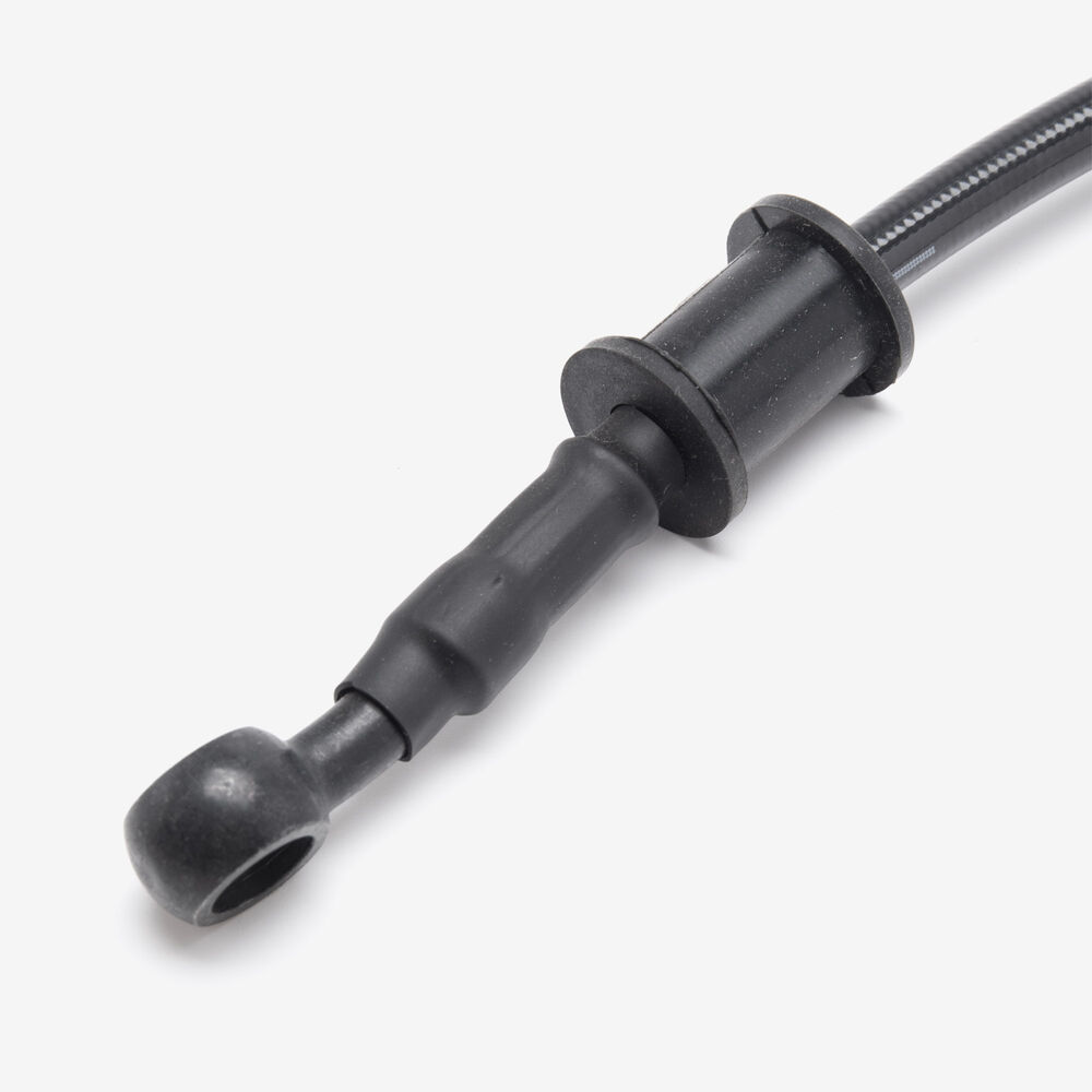 The hose's job is to carry brake fluid from the master cylinder to the caliper on the wheel.