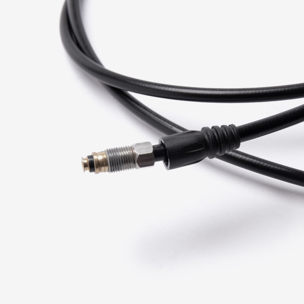 The hose's job is to carry brake fluid from the master cylinder to the caliper on the wheel.