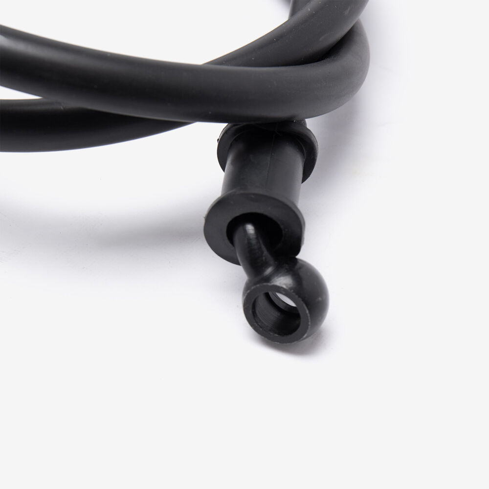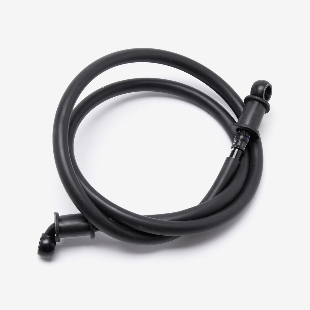 The hose's job is to carry brake fluid from the master cylinder to the caliper on the wheel.